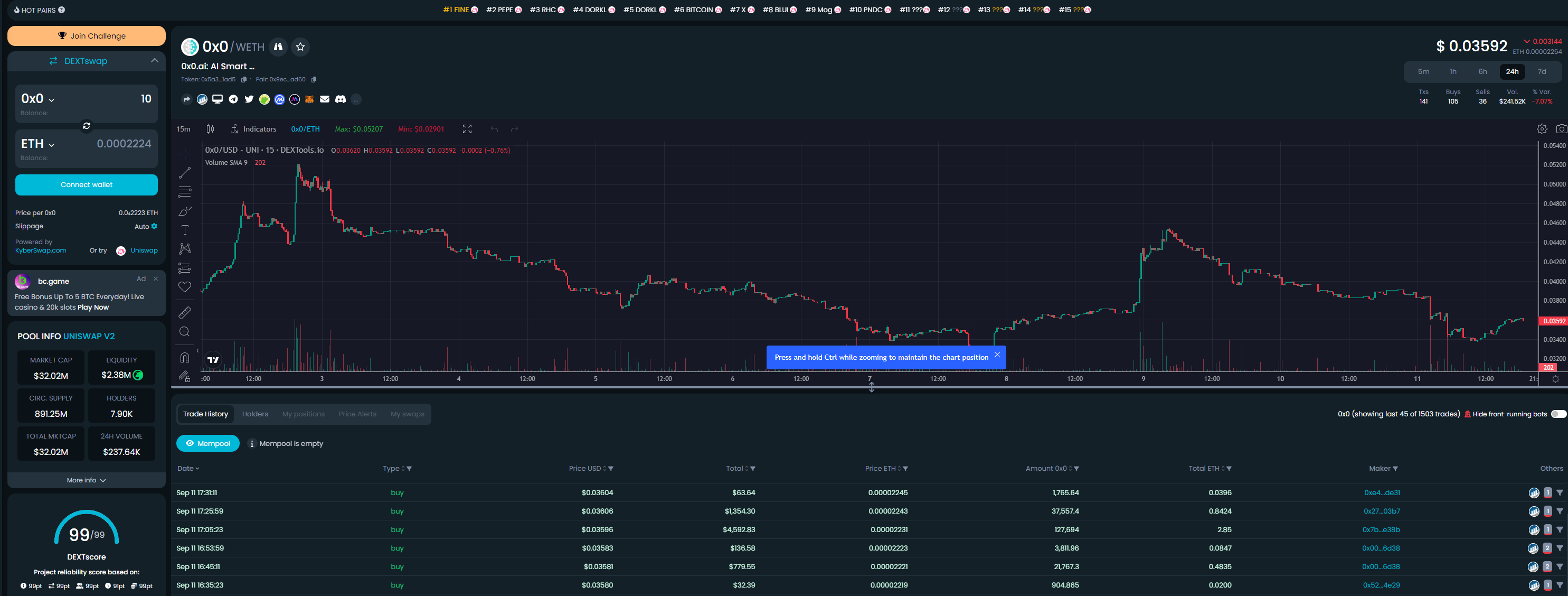두 번째는 Dextools입니다.