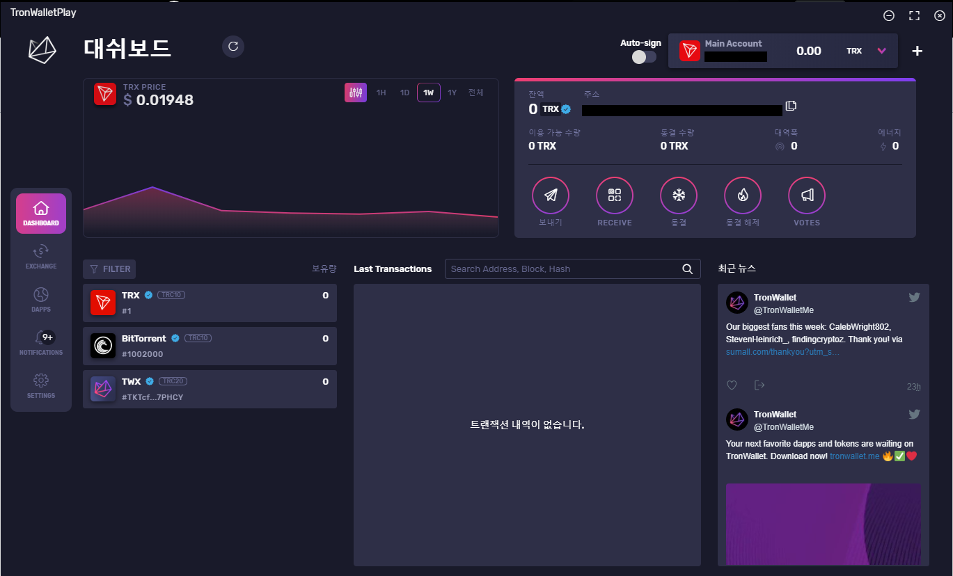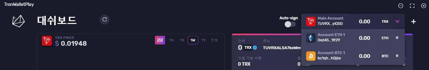 (TronwalletMe에선 이더랑 비트도 지원을 한다고 합니다. 해보진 않고 소식만 듣고있네요ㅎ)